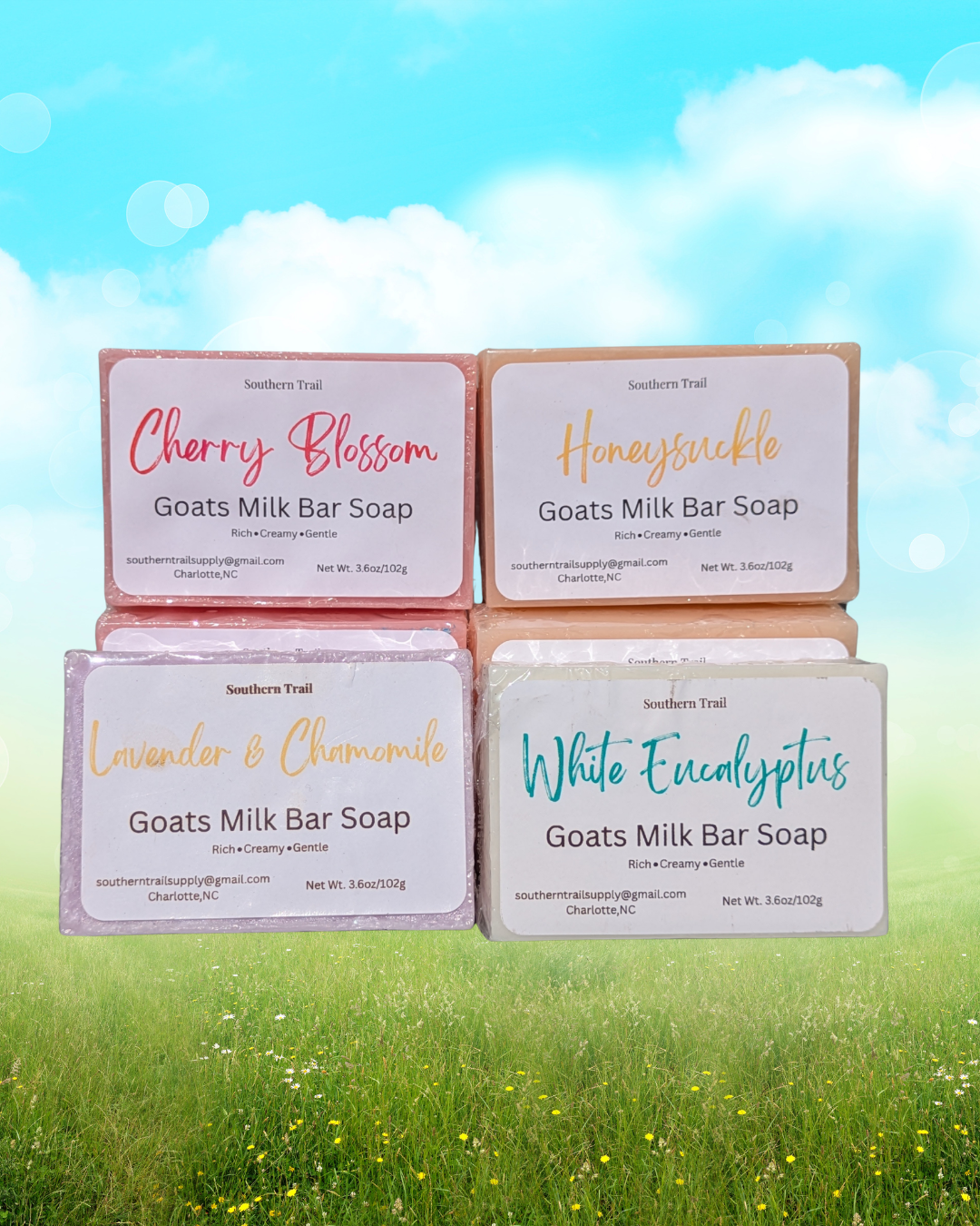 Creamy, gentle, and naturally nourishing, our goat’s milk bars cleanse with a soft spring fragrance and a rich, velvety lather.